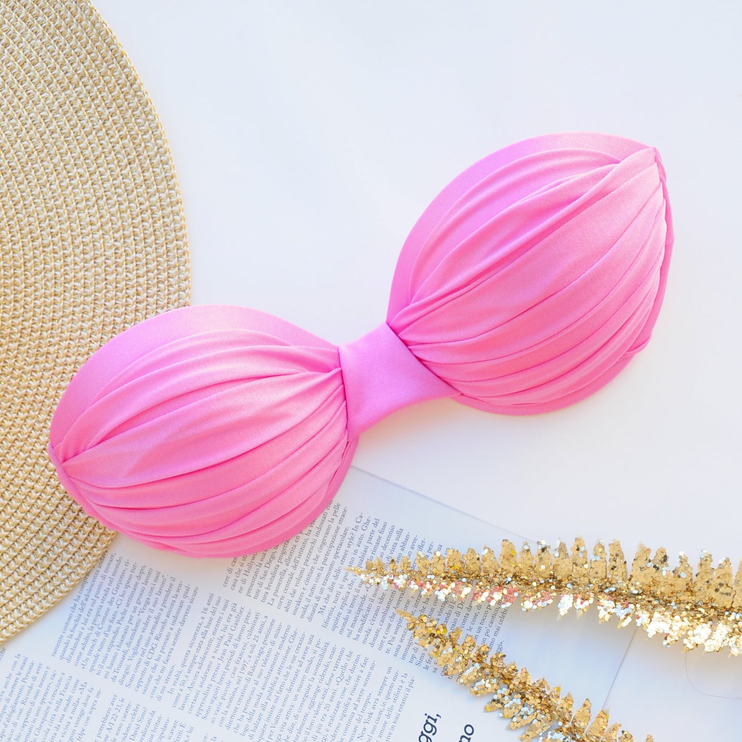 It's a timeless essential, designed for those who love an elegant, minimalist style. Its padded bandeau design with fixed cups provides gentle support and a natural décolleté shape, discreetly enhancing it. The neck tie provides added support, and the bow closure makes it adjustable.