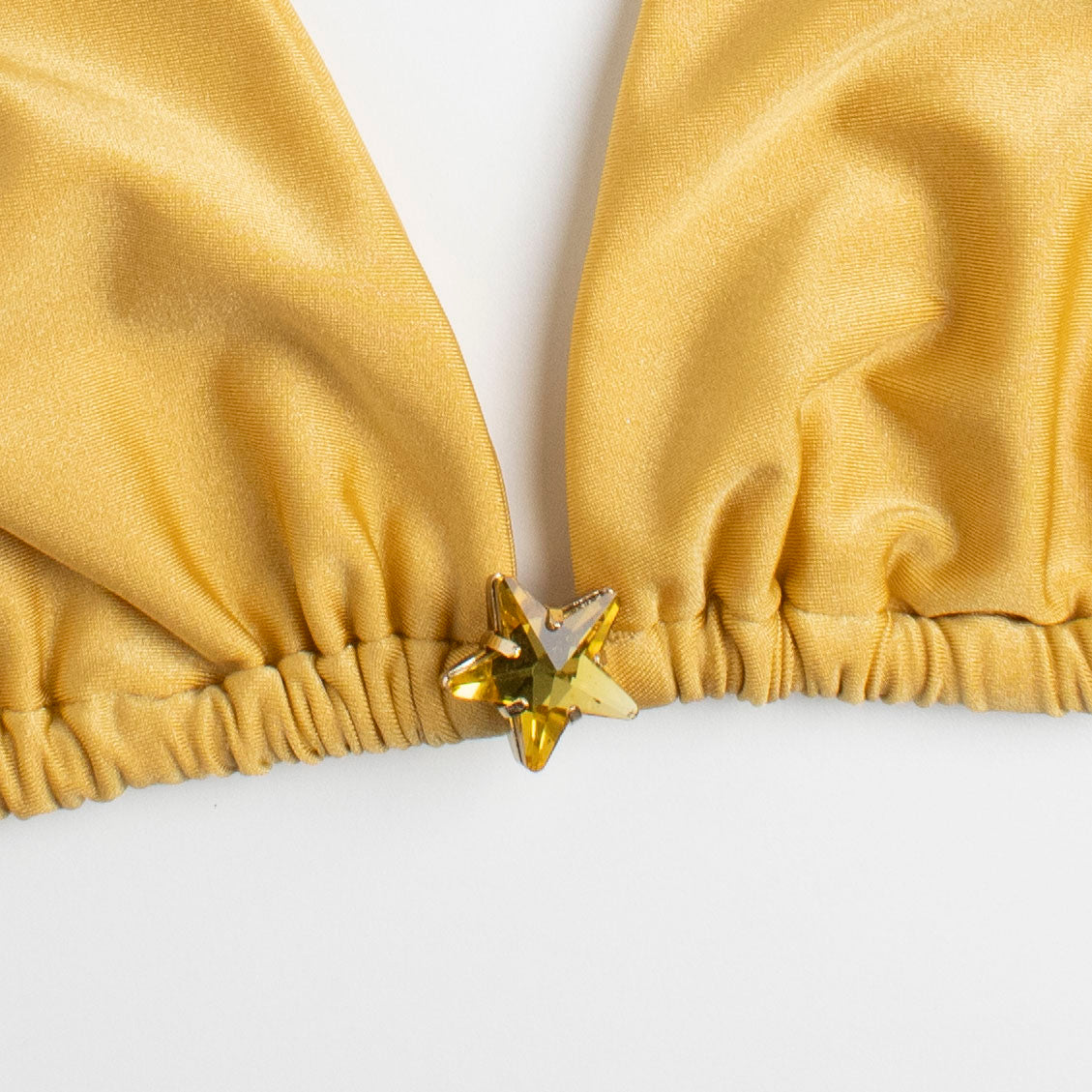Bikini Top Maryna, impreziosito da un accessorio non removibile a forma di stella firmato Helis Brain, illuminato da una brillante pietra Swarovski che cattura e riflette la luce con eleganza. Un dettaglio raffinato e luminoso, pensato per valorizzare il design del top e donare un tocco esclusivo e sofisticato al look mare.
